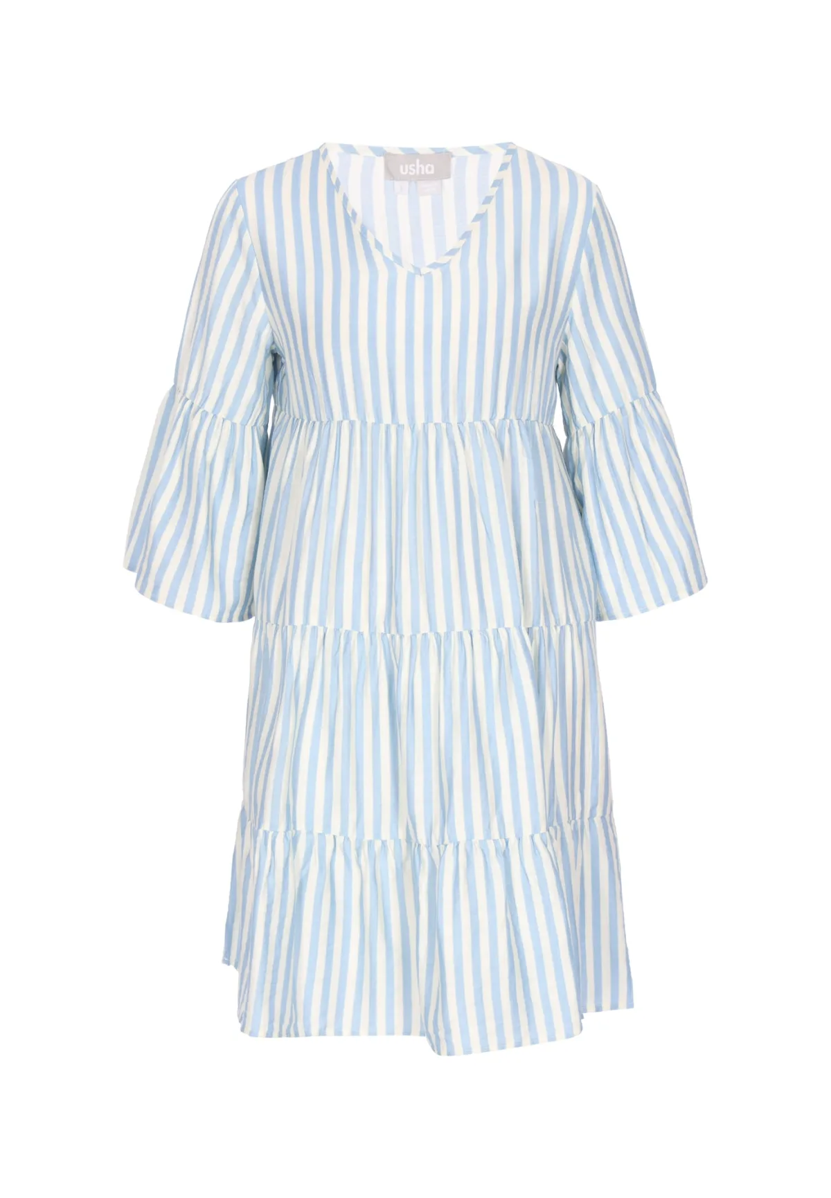 Usha Jurk pastelblauw / wit Prijzen