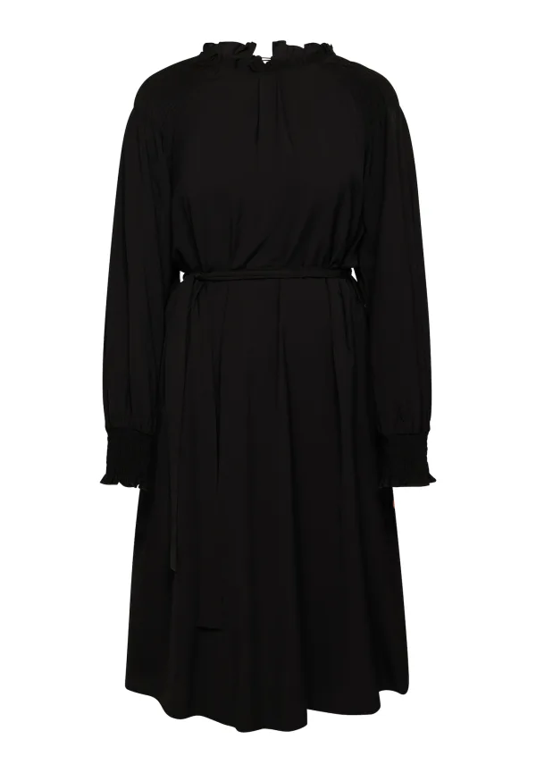 Type sluiting: Knoopsluiting; Materiaal: Viscose; Halstype: Opstaande kraag; Motief: Effen; Details: Cut-outs, Ruches, Gedrapeerd; Lengte: Knielengte; Pasvorm: Normale pasvorm; Armlengte: Lange mouw