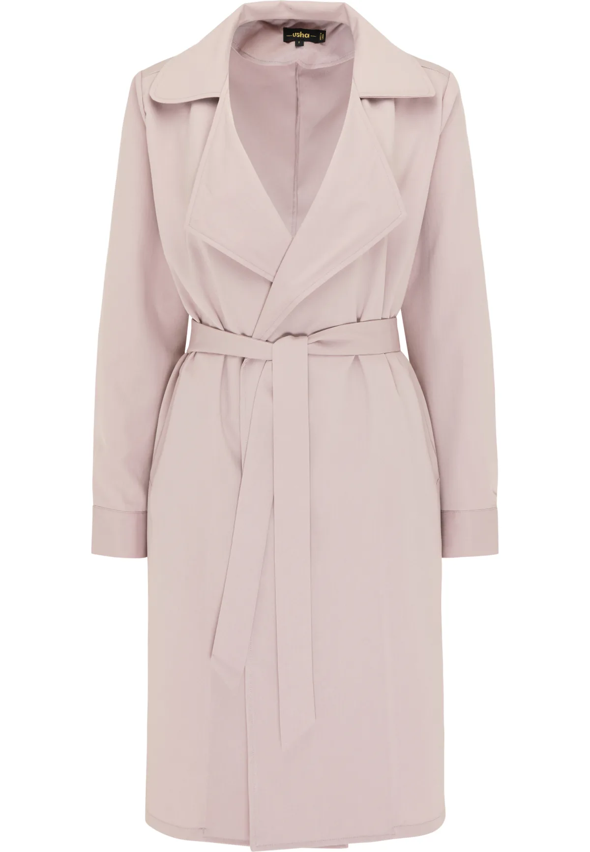 Geen vulling Deze lichtgewicht jas van usha BLACK LABEL is een elegante metgezel die kan worden gecombineerd met elke gelegenheid en elke garderobe. Het heeft een losse, rechte snit met zijzakken en een riem waarmee je de jas nonchalant om je middel kunt trekken. De uiteinden van de mouwen zijn omgeslagen, wat de jas een bijzonder fraaie uitstraling geeft. Het lichtgewicht materiaal is licht rekbaar, waardoor het nog comfortabeler draagt. Jas