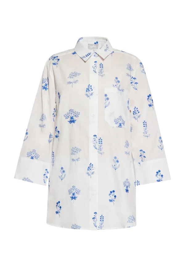 Geef je stijl een boost met dit katoenen overhemd met wijde mouwen en prachtig bloemenborduurwerk. De klassieke kraag en knoopsluiting aan de voorkant zorgen voor een verfijnde look, terwijl de geborduurde bloemen en een steekzakje op de borst voor charme zorgen. Dit overhemd met lange mouwen combineert elegantie perfect met comfort. Overhemd