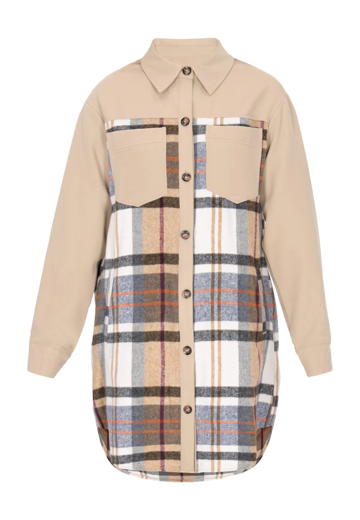 Modieus lang overhemd, ideaal voor liefhebbers van streetstyle. De losse pasvorm, klassieke kraag en lange mouwen met knopen accentueren en zorgen voor een casual look. Dit geweven overhemd met zakken en een knoopsluiting aan de voorkant heeft een stijlvol patchwork-ruitpatroon. De losse pasvorm zorgt voor essentieel draagcomfort. Het maakt deel uit van de Outwear Collectie. Overhemd