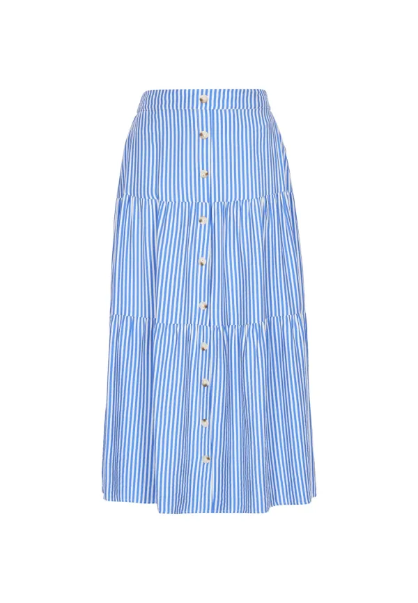 Design: Elastische taille/zoom; Type sluiting: Knoopsluiting; Materiaal: Viscose; Motief: Gestreept; Rokvorm: A-lijn rok; Details: Volant, Gedrapeerd; Extra's: All-over patroon; Lengte: 3/4 lengte; Pasvorm: Normale pasvorm; Taillehoogte: Mid waist