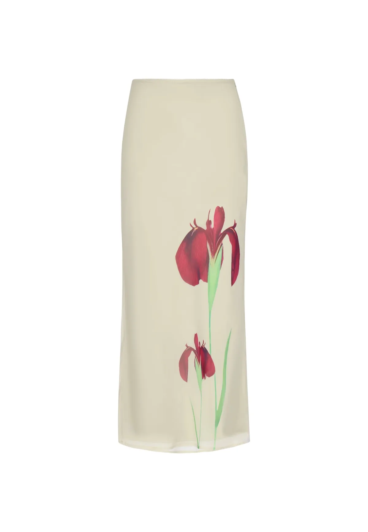 Design: Gevoerde zoom/rand; Type sluiting: Ritssluiting; Materiaal: Satijn; Motief: Bloemenprint; Rokvorm: A-lijn rok; Extra's: Gladde stof; Lengte: 3/4 lengte; Pasvorm: Normale pasvorm; Taillehoogte: Mid waist