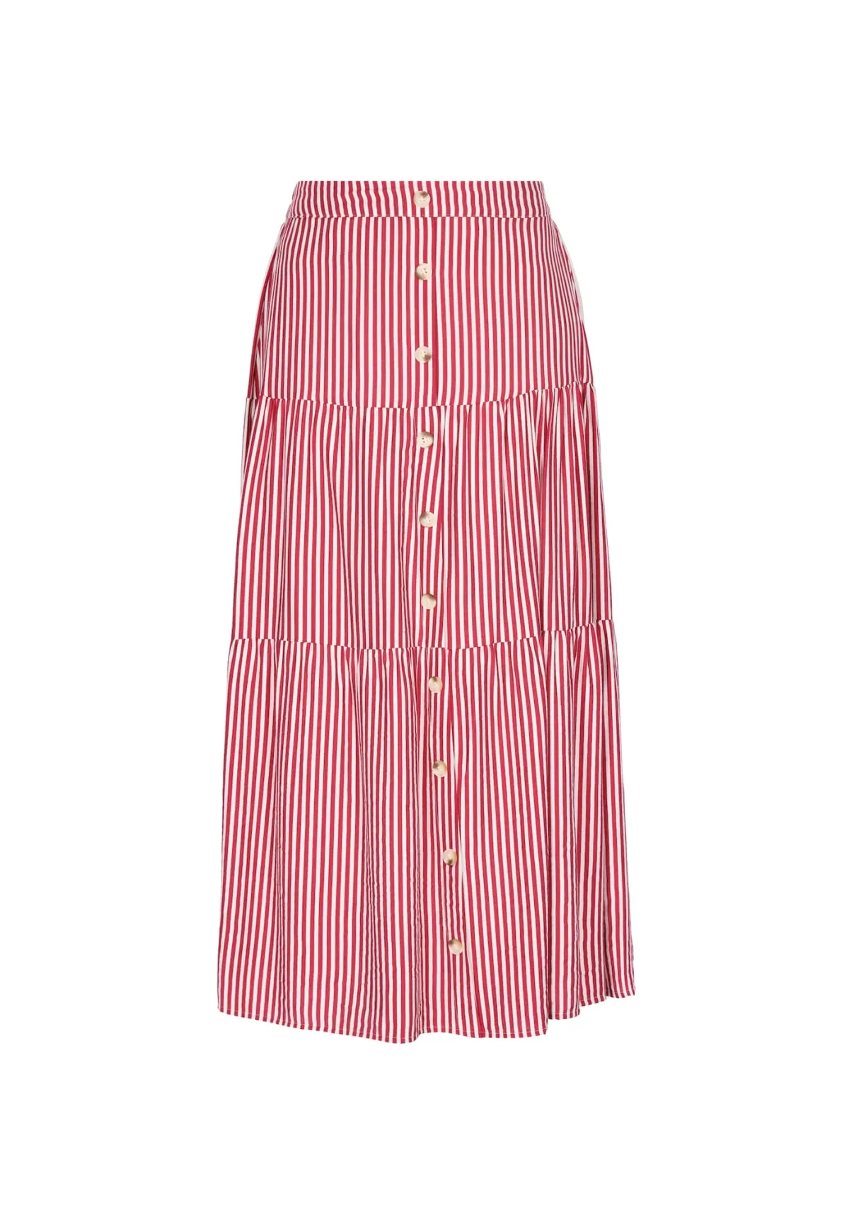 Design: Elastische taille/zoom; Type sluiting: Knoopsluiting; Materiaal: Viscose; Motief: Gestreept; Rokvorm: A-lijn rok; Details: Volant, Gedrapeerd; Extra's: All-over patroon; Lengte: 3/4 lengte; Pasvorm: Normale pasvorm; Taillehoogte: Mid waist