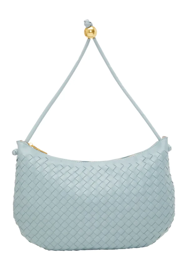 Maak kennis met een middelgrote handtas met een halfronde vorm en een platte bodem voor extra stabiliteit. De bovenste handgreep is versierd met kralenversieringen, wat een vleugje verfijning toevoegt. Met een handige ritssluiting en een binnenvak voor organisatie. Gemaakt van ecoleer met een gevlochten patroon, straalt deze stijlvolle tas elegantie en charme uit.