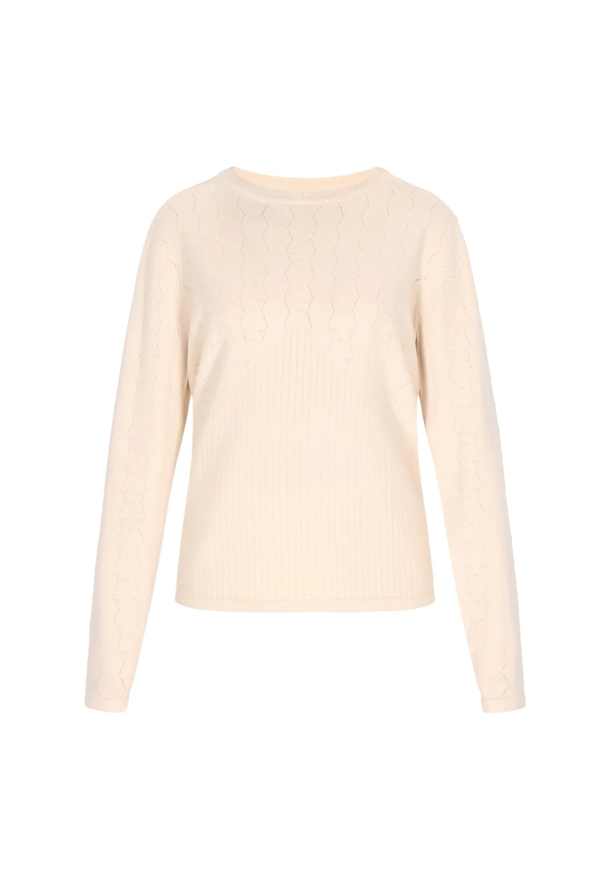 Design: Geribbelde kraag, Overcut schouder; Materiaal: Knitwear; Halstype: Ronde hals; Motief: Effen; Details: Mesh; Extra's: Met textuur, Voelt zacht aan; Pasvorm: Normale pasvorm; Armlengte: Lange mouw; Lengte: Normale lengte