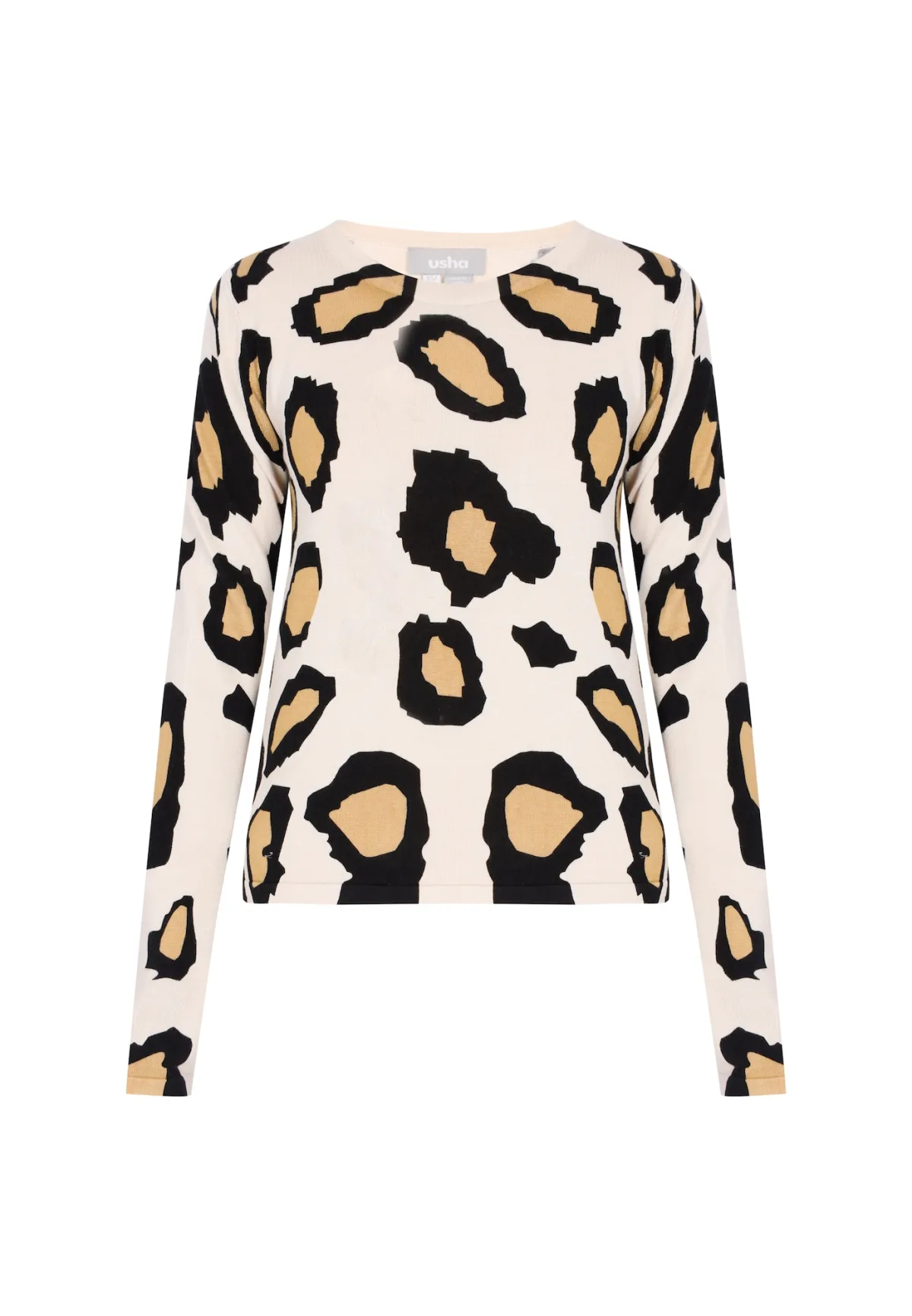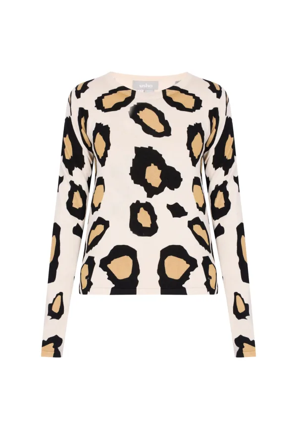 Design: Rechte zoom, Geribbeld gebreid; Materiaal: Knitwear; Halstype: Ronde hals; Motief: Dierenprint; Extra's: All-over patroon, Met textuur; Pasvorm: Normale pasvorm; Armlengte: Lange mouw; Lengte: Normale lengte