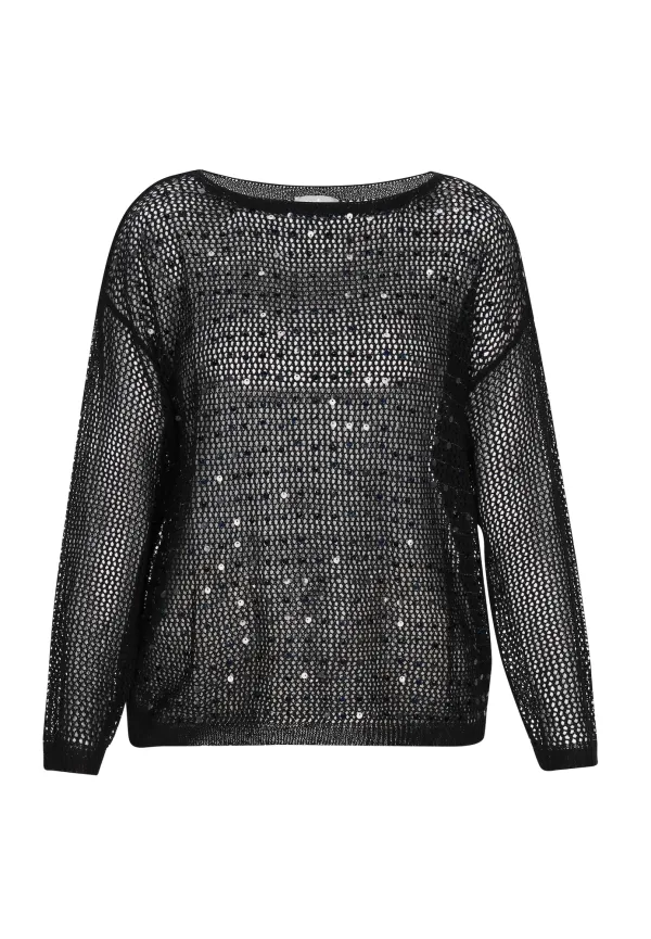 Design: Geribd ceintuurtje; Materiaal: Knitwear; Halstype: Ronde hals; Motief: Effen; Details: Pailletten, Mesh; Extra's: Met textuur; Pasvorm: Losse pasvorm; Armlengte: Lange mouw; Lengte: Normale lengte