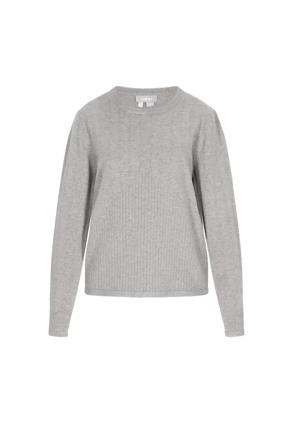 Design: Geribbelde kraag, Rechte zoom; Materiaal: Knitwear; Halstype: Ronde hals; Motief: Mélange; Details: Mesh; Extra's: Met textuur; Pasvorm: Normale pasvorm; Armlengte: Lange mouw; Lengte: Normale lengte