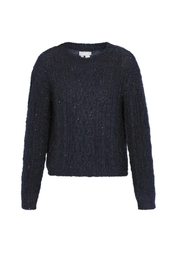 Design: Geribd ceintuurtje; Materiaal: Knitwear; Halstype: Ronde hals; Motief: Effen; Details: Pailletten; Extra's: Applicaties; Pasvorm: Normale pasvorm; Armlengte: Lange mouw; Lengte: Normale lengte