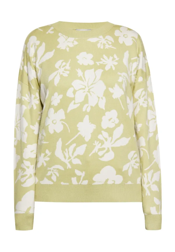 Deze gebreide trui heeft een charmant bloemmotiefpatroon, perfect om een vleugje elegantie aan je garderobe toe te voegen. Met zijn ronde halslijn en lange mouwen biedt deze trui een ontspannen pasvorm voor comfortabel dragen. Het geribde breisel aan de zoom, manchetten en halslijn zorgt voor een aansluitende en stijlvolle afwerking, waardoor het ideaal is voor zowel casual als semi-casual gelegenheden. Jumper