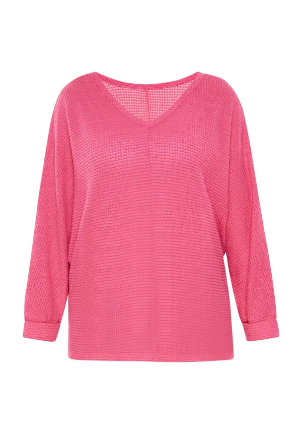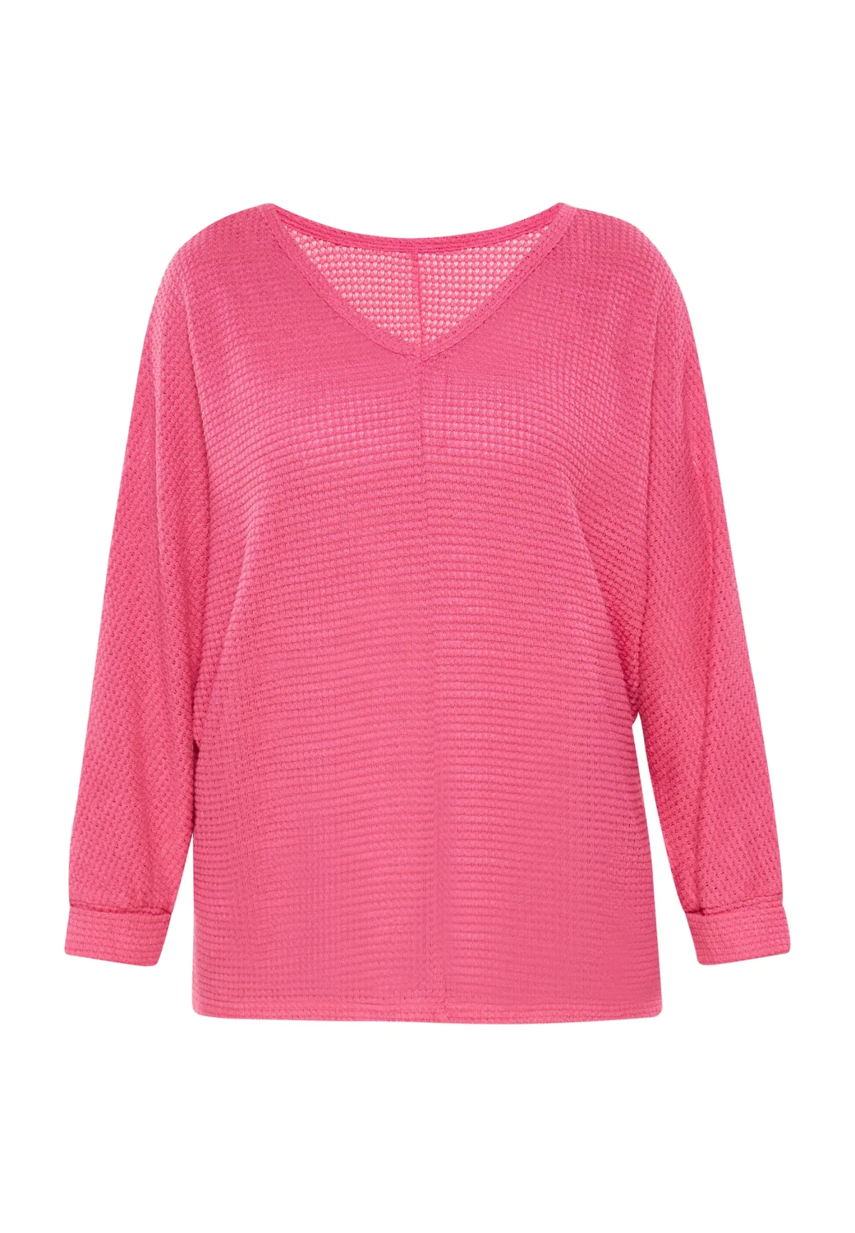 Design: Rechte zoom; Materiaal: Knitwear; Halstype: V-hals; Motief: Effen; Extra's: Wafelstructuur; Pasvorm: Wijde pasvorm; Armlengte: Lange mouw; Lengte: Normale lengte