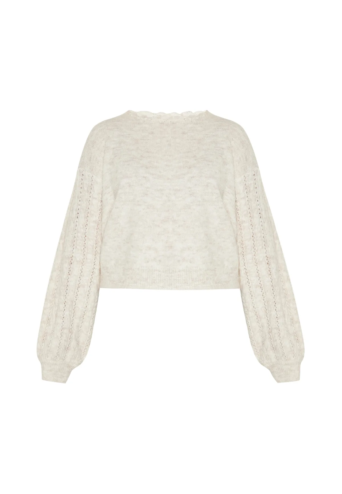 Design: Pofmouwen, Geribd ceintuurtje; Type sluiting: Slip; Materiaal: Knitwear; Halstype: Ronde hals; Motief: Mélange; Extra's: Voelt zacht aan; Pasvorm: Normale pasvorm; Armlengte: Lange mouw; Lengte: Normale lengte