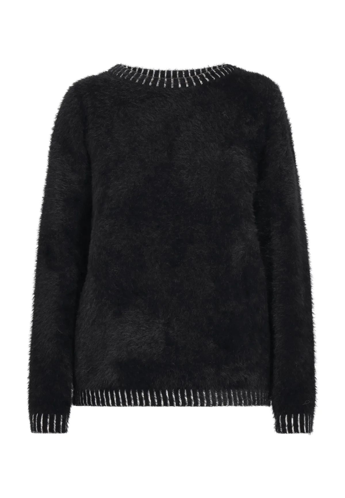 Deze trui met ronde hals heeft een gestructureerde en pluizige look en is voorzien van geribde details aan de kraag, manchetten en zoom voor een mooi contrast van textuur. De rechte, losse snit valt net onder de taille voor warmte en comfort. Versterkte naden op de kraag verhogen de duurzaamheid, terwijl het eenvoudige en veelzijdige ontwerp geschikt is voor verschillende stijlen en gelegenheden. Jumper
