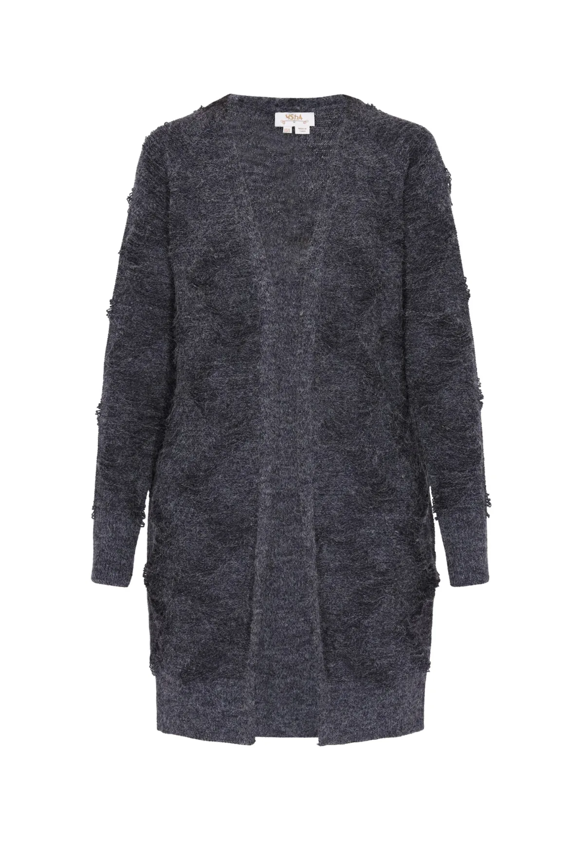Dit knielange vest is een veelzijdige toevoeging aan je garderobe. Met zijn gestructureerde look en licht gerafelde randen straalt hij een nonchalante, maar toch chique charme uit. Het open ontwerp zorgt voor moeiteloze gelaagdheid, terwijl de losse pasvorm voor comfort zorgt. Dit vest is perfect om een vleugje ontspannen elegantie toe te voegen aan elke outfit en is een must-have voor iedereen die een ingetogen stijl met een vleugje verfijning waardeert. Vest