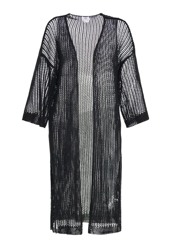 Met trots presenteren wij onze nieuwste toevoeging aan de dameskledingcollectie: een lichtgewicht, open vest, perfect voor stranddagen of casual uitjes. Dit kledingstuk is gemaakt van een mesh-achtige stof en heeft een uniek transparant effect dankzij een artistiek weefsel van draden dat open ruimtes van verschillende afmetingen creëert. De diepe V-halslijn voegt een vrouwelijk tintje toe aan de ontspannen en moeiteloze stijl. Vest