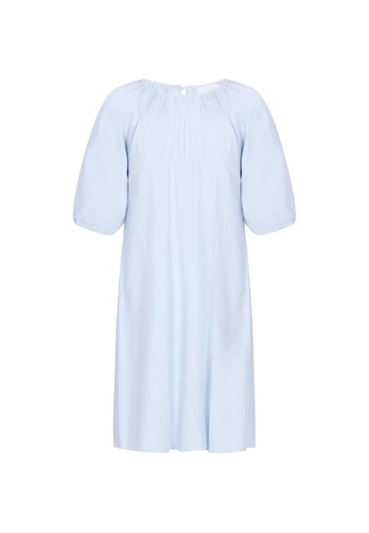 Design: Keyholesluiting, Pofmouwen; Type sluiting: Knoopsluiting; Halstype: Ronde hals; Motief: Effen; Details: Cut-outs, Gedrapeerd; Extra's: Op staal naden, Gladde stof; Lengte: Knielengte; Snit: Uitlopend; Pasvorm: Losse pasvorm; Armlengte: Halve mouw