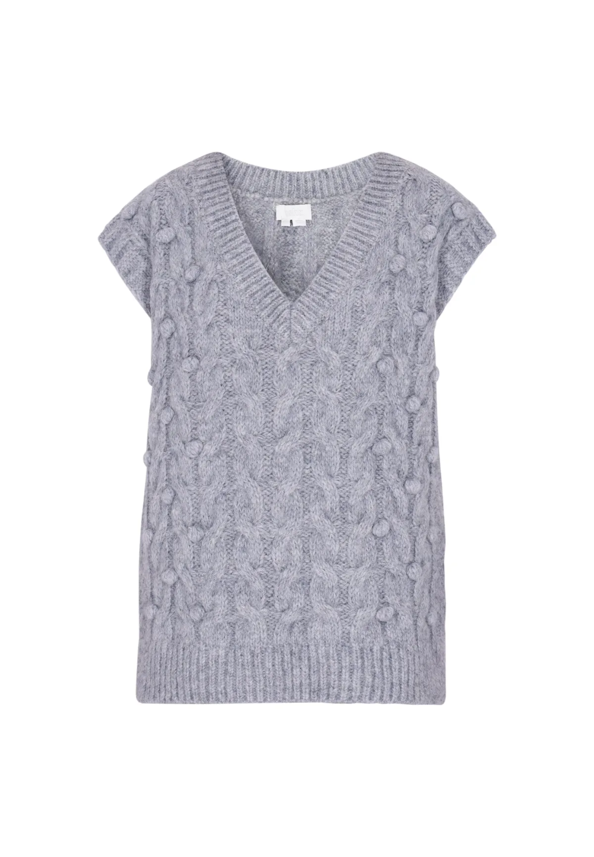 Design: Vlecht brei; Type sluiting: Slip; Materiaal: Knitwear; Halstype: V-hals; Motief: Mélange; Extra's: Fully fashioned; Pasvorm: Normale pasvorm; Armlengte: Kwartmouw; Lengte: Normale lengte