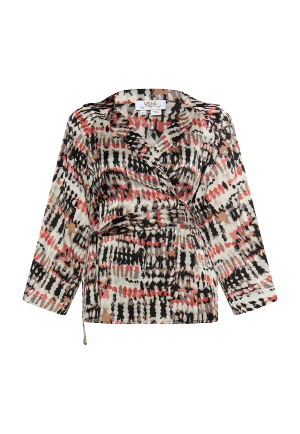 Specificaties: usha Wikkel blouse Dames Grijs Donkerroze Veelkleurig