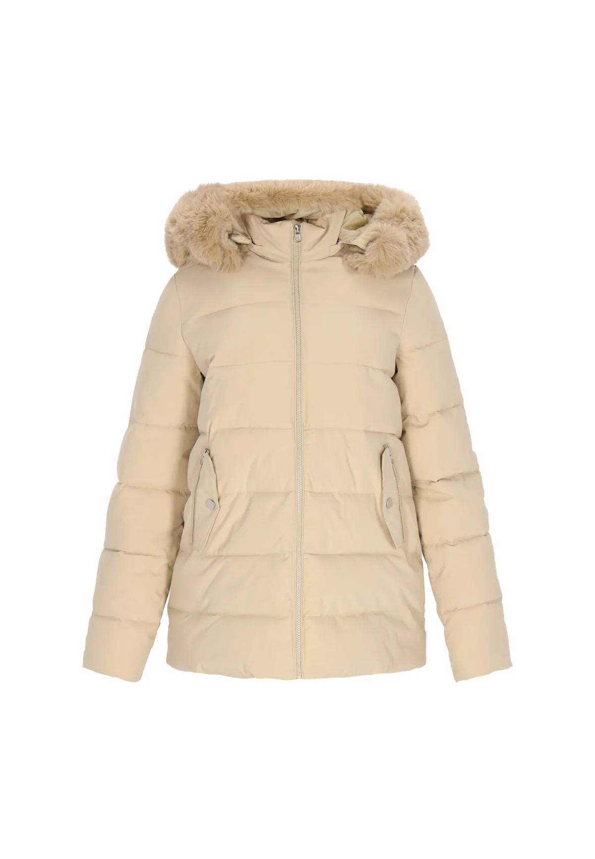 Design: Capuchon met nepbont kraag, Zakken aan de zijkant; Type sluiting: Ritssluiting; Type jas: Gewatteerde jas; Voering: Warm gevoerd; Motief: Effen; Extra's: Stiksels, Op staal naden, Met faux bont trim; Pasvorm: Normale pasvorm