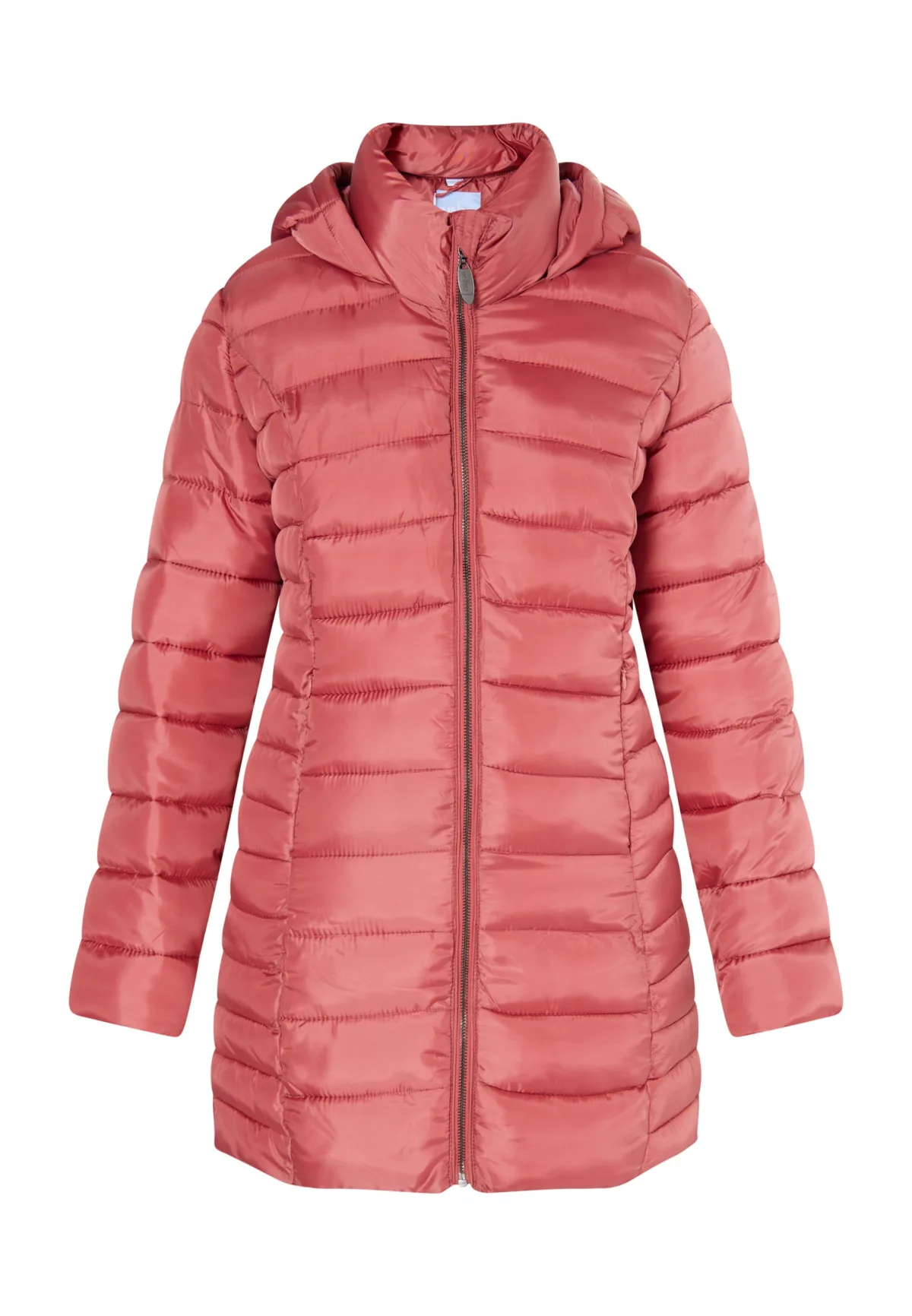 Deze lichtgewicht winterjas van usha BLUE LABEL is gemaakt van glanzend buitenmateriaal en heeft een diervriendelijk, synthetisch vulmateriaal, dat zorgt voor een warme isolatie. De licht getailleerde snit wordt harmonieus aangevuld door de capuchon, de verborgen zakken met ritssluiting en de gewatteerde opstaande kraag. winterjas