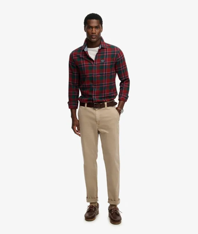 Taps toelopende pasvorm. Dit model zit ruim op de dij en loopt geleidelijk toe tot een strakke enkelopening. De taps toelopende pasvorm zorgt voor een eigentijdse en getailleerdere look. Tailleband met riemlussen en vier buitenzakken Rits- en knoopsluiting met een klein kenmerkend label op de tailleband aan de achterkant Klassieke chino's zijn altijd een goede keuze en onze Utility chinobroek biedt de perfecte combinatie van stijlvol en authentiek. De broek heeft vier buitenzakken en een prachti