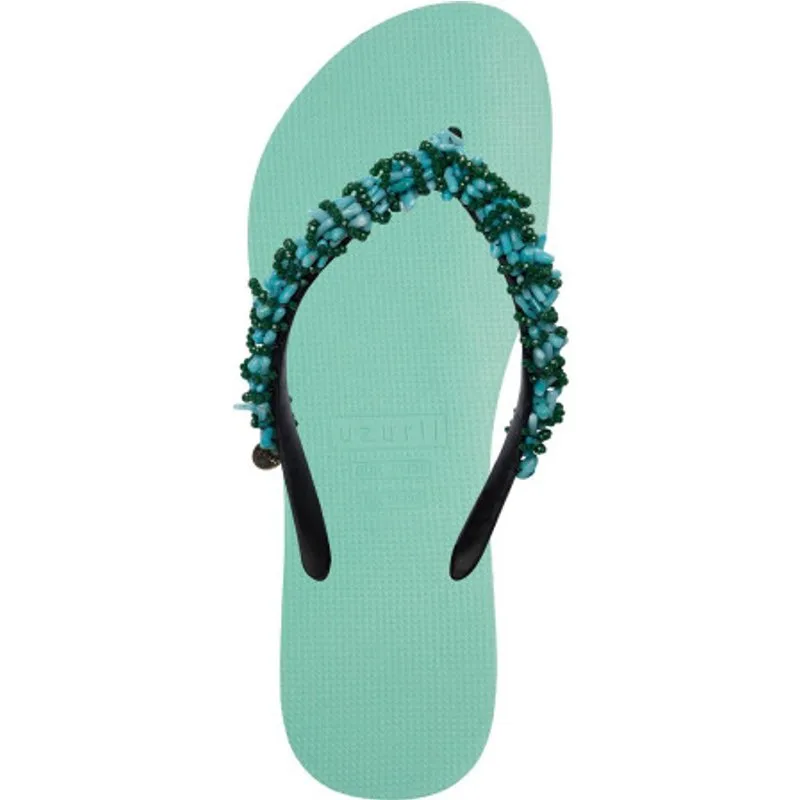Onze Amazonas slippers zijn geïnspireerd op het regenwoud van de Amazone en haar heldere kleuren. Het rijke groen en het speelse blauw nemen je mee naar de jungle. De stenen worden met een zeer speciale en unieke techniek aan de slipper genaaid. Onze slippers zijn uniek, handgemaakt en met zorg en liefde ontworpen. De zool, die zijdezacht aanvoelt aan je voet, is gemaakt van rubber. De bandjes zijn gemaakt van PVC. De V kenmerkt zich door het originele Uzurii logo op de bandjes. Onze slippers worden gemaakt in China en Brazilië.