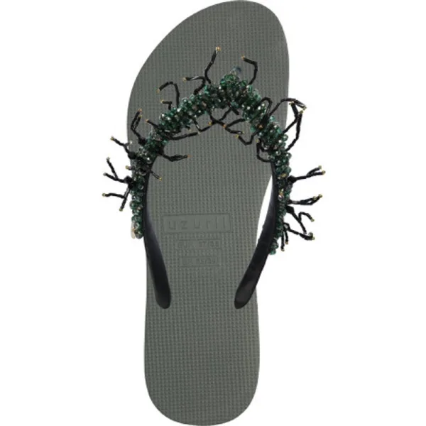 De Bahia Black is uniek door de ingewikkelde naaitechniek die wordt gebruikt om deze stijl te maken. Onderscheidend, maar bijzonder stijlvol en vrouwelijk. Mensen zullen zich zeker afvragen waar u deze coole teenslippers vandaan heeft. Onze slippers zijn uniek, handgemaakt en met zorg en liefde ontworpen. De zool, die zijdezacht aanvoelt aan je voet, is gemaakt van rubber. De bandjes zijn gemaakt van PVC. De V kenmerkt zich door het originele Uzurii logo op de bandjes. Onze slippers worden gemaakt in China en Brazilië.
