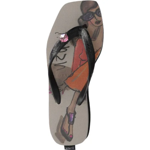 De Beach Printed Cocktail Girl is niet zoals alle anderen, net als jij! De vierkante plateauzool is versierd met een handgemaakte tekening (optioneel: voor ons ontworpen door Noortje den Oudsten). De print van deze slippers is leuk en speels. De V heeft een effen kleur en een druk knop waarmee je de switch button makkelijk zelf kunt verwisselen. Kies uit een groot aantal stenen uit onze accessoirelijn. Zo tover je jouw paar flip flops eenvoudig om tot een nieuwe look! Onze slippers zijn uniek, handgemaakt en met zorg en liefde ontworpen. De zool, die zijdezacht aanvoelt aan je voet, is gemaakt van rubber. De bandjes zijn gemaakt van PVC. De V kenmerkt zich door het originele Uzurii logo op de bandjes. Onze slippers worden gemaakt in China en Brazilië.