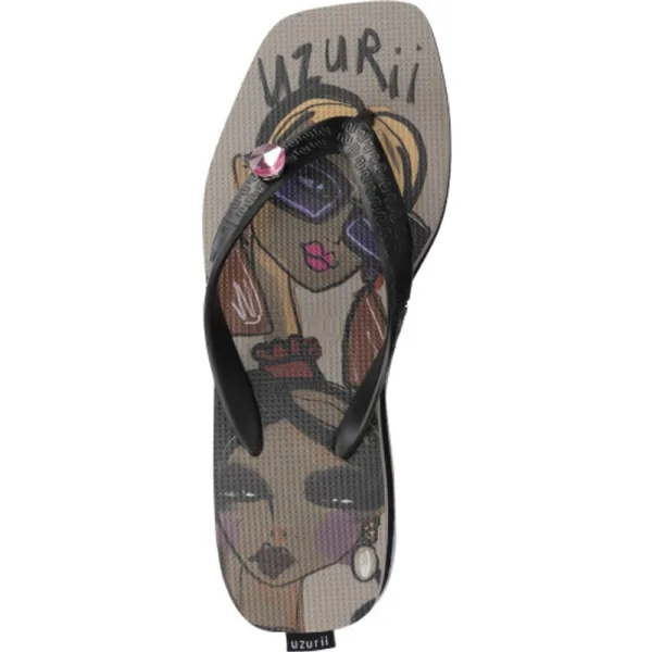De Beach Printed Stella is niet zoals alle anderen, net als jij! De vierkante plateauzool is versierd met een handgemaakte tekening (optioneel: voor ons ontworpen door Noortje den Oudsten). De print van deze slippers is leuk en speels. De V heeft een effen kleur en een druk knop waarmee je de switch button makkelijk zelf kunt verwisselen. Kies uit een groot aantal stenen uit onze accessoirelijn. Zo tover je jouw paar flip flops eenvoudig om tot een nieuwe look!Onze slippers zijn uniek, handgemaakt en met zorg en liefde ontworpen. De zool, die zijdezacht aanvoelt aan je voet, is gemaakt van rubber. De bandjes zijn gemaakt van PVC. De V kenmerkt zich door het originele Uzurii logo op de bandjes. Onze slippers worden gemaakt in China en BraziliÎ