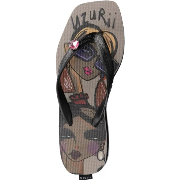 De Beach Printed Stella is niet zoals alle anderen, net als jij! De vierkante plateauzool is versierd met een handgemaakte tekening (optioneel: voor ons ontworpen door Noortje den Oudsten). De print van deze slippers is leuk en speels. De V heeft een effen kleur en een druk knop waarmee je de switch button makkelijk zelf kunt verwisselen. Kies uit een groot aantal stenen uit onze accessoirelijn. Zo tover je jouw paar flip flops eenvoudig om tot een nieuwe look!Onze slippers zijn uniek, handgemaakt en met zorg en liefde ontworpen. De zool, die zijdezacht aanvoelt aan je voet, is gemaakt van rubber. De bandjes zijn gemaakt van PVC. De V kenmerkt zich door het originele Uzurii logo op de bandjes. Onze slippers worden gemaakt in China en BraziliÎ