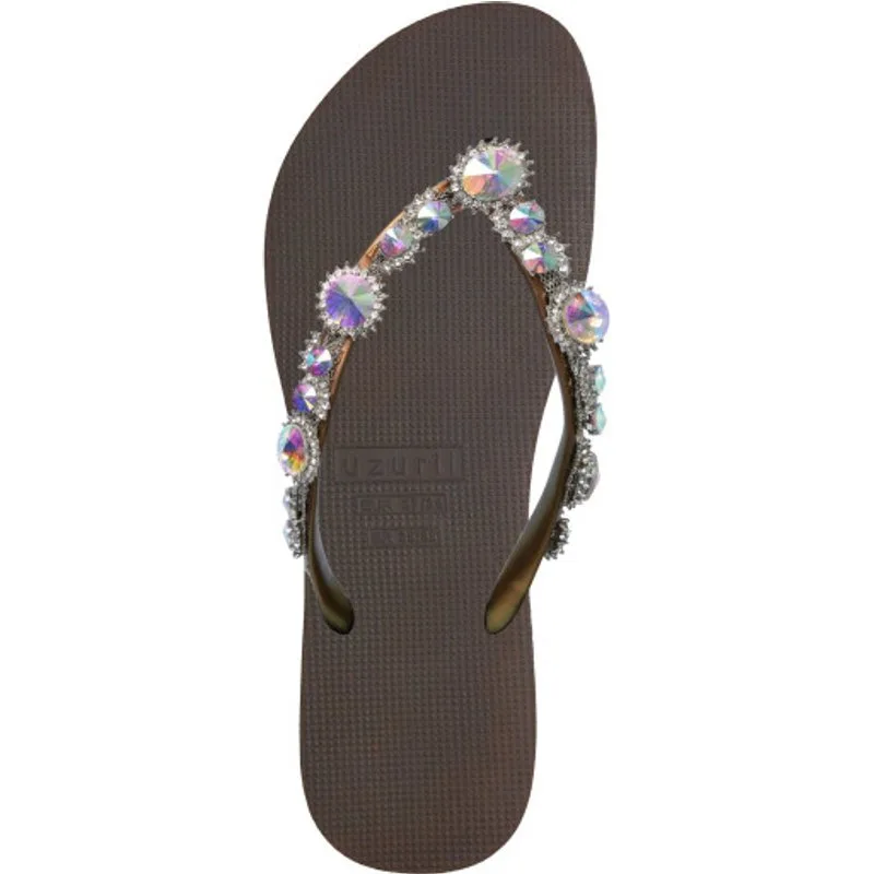 Het ontwerp voor deze slippers is volledig geïnspireerd op stijlicoon Marilyn Monroe. Zij stond bekend om haar ultra-vrouwelijke looks. De Chrystal Marilyn herken je aan haar elegante, fonkelende stenen. De V wordt bedekt met een glanzende, zilveren ketting.Onze slippers zijn uniek, handgemaakt en met zorg en liefde ontworpen. De zool, die zijdezacht aanvoelt aan je voet, is gemaakt van rubber. De bandjes zijn gemaakt van PVC. De V kenmerkt zich door het originele Uzurii logo op de bandjes. Onze slippers worden gemaakt in China en BraziliÎ.