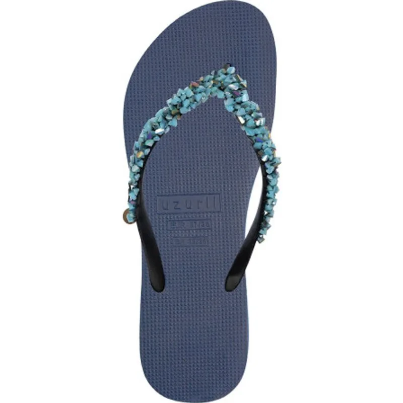 De glanzende stenen op onze Classic Aby worden met een zeer speciale en unieke techniek aan de slipper genaaid. Het babyblauw voegt een speels accent toe aan ditgeheel. Onze slippers zijn uniek, handgemaakt en met zorg en liefde ontworpen. De zool, die zijdezacht aanvoelt aan je voet, is gemaakt van rubber. De bandjes zijn gemaakt van PVC. De V kenmerkt zich door het originele Uzurii logo op de bandjes. Onze slippers worden gemaakt in China en BraziliÎ.