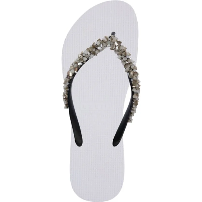 De glanzende stenen op onze Classic Aby worden met een zeer speciale en unieke techniek aan de slipper genaaid. Het babyblauw voegt een speels accent toe aan dit klassieke ontwerp. Het zilver en goud passen perfect bij je sieraden en geven nÈt dat beetje extra je uw outfit en accessoires. Een must-have met glinsterende kleuren en stenen!Onze slippers zijn uniek, handgemaakt en met zorg en liefde ontworpen. De zool, die zijdezacht aanvoelt aan je voet, is gemaakt van rubber. De bandjes zijn gemaakt van PVC. De V kenmerkt zich door het originele Uzurii logo op de bandjes. Onze slippers worden gemaakt in China en BraziliÎ