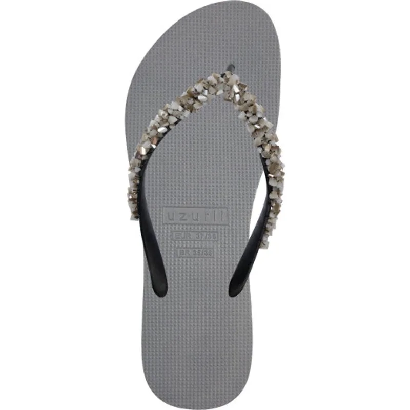 De glanzende stenen op onze Classic Aby worden met een zeer speciale en unieke techniek aan de slipper genaaid. Het babyblauw voegt een speels accent toe aan dit klassieke ontwerp. Het zilver en goud passen perfect bij je sieraden en geven nÈt dat beetje extra je uw outfit en accessoires. Een must-have met glinsterende kleuren en stenen!Onze slippers zijn uniek, handgemaakt en met zorg en liefde ontworpen. De zool, die zijdezacht aanvoelt aan je voet, is gemaakt van rubber. De bandjes zijn gemaakt van PVC. De V kenmerkt zich door het originele Uzurii logo op de bandjes. Onze slippers worden gemaakt in China en BraziliÎ
