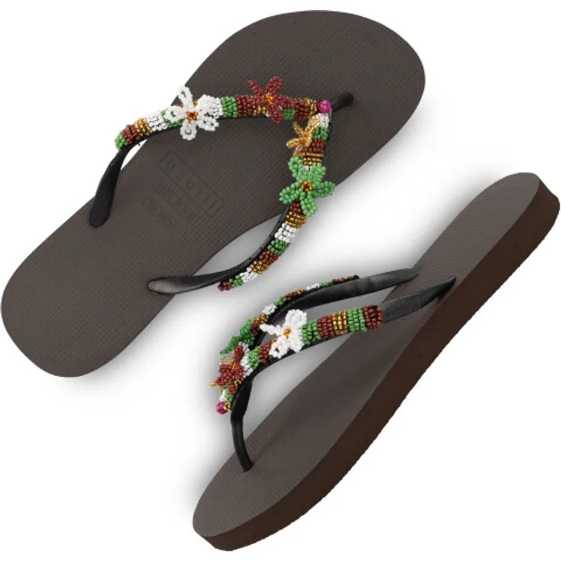 Model Las Dalias ….. is buitengewoon uniek. De unieke geregen techniek achter deze stijl geeft het model meer karakter en maakt het nog onderscheidender. De met de hand geregen upper van strass-steentjes is rijkelijk versierd met geregen bloemen in diverse trendy kleuren. Dit maakt deze slippers absolute eyecatchers, die niet alleen stijlvol zijn, maar ook comfort bieden dankzij een rubberen zool en fijne demping. Ontdek de unieke combinatie van stijl en comfort met de Las Dalias …. slippers.