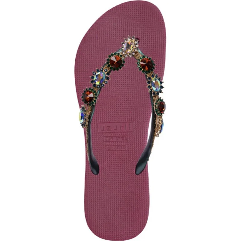 Het ontwerp voor deze slippers is volledig geïnspireerd op stijlicoon Marilyn Monroe. Zij stond bekend om haar ultra-vrouwelijke looks. De Monroe is versierd met sierlijke, grote en kleurrijke, kleinere stenen. De V wordt bedekt met een glanzende gouden ketting.Onze slippers zijn uniek, handgemaakt en met zorg en liefde ontworpen. De zool, die zijdezacht aanvoelt aan je voet, is gemaakt van rubber. De bandjes zijn gemaakt van PVC. De V kenmerkt zich door het originele Uzurii logo op de bandjes. Onze slippers worden gemaakt in China en BraziliÎ.