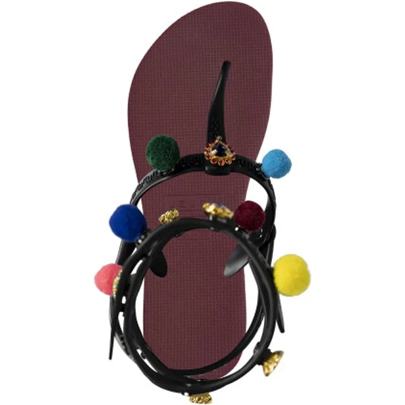 Waan je op Ibiza met onze Mystique Pompom! Deze sandalen herken je aan de pompons en kleurrijke stenen. Door de drukknoopjes, kun je de pompons en stenen zelf verwisselen. Kies uit een groot aantal stenen uit onze accessoires lijn. Geef je slippers in een handomdraai een nieuwe look. Op zoek naar comfort? De Mystique Pompom geeft extra steun door de bandjes over de hiel.Onze slippers zijn uniek, handgemaakt en met zorg en liefde ontworpen. De zool, die zijdezacht aanvoelt aan je voet, is gemaakt van rubber. De bandjes zijn gemaakt van PVC. De V kenmerkt zich door het originele Uzurii logo op de bandjes. Onze slippers worden gemaakt in China en BraziliÎ.
