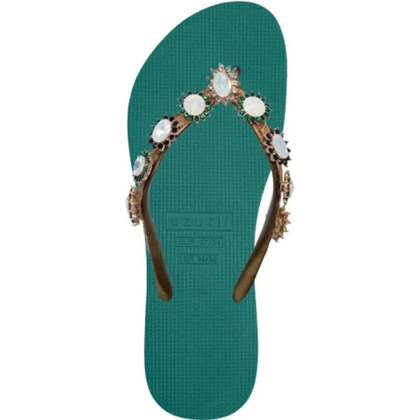 Het ontwerp voor deze slippers is volledig geïnspireerd op stijlicoon Marilyn Monroe. Zij stond bekend om haar ultra-vrouwelijke looks. De Pearl Monroe herken je aan haar parelmoer kleurige en gekleurde stenen. De V wordt bedekt met een glanzende, zilveren ketting.Onze slippers zijn uniek, handgemaakt en met zorg en liefde ontworpen. De zool, die zijdezacht aanvoelt aan je voet, is gemaakt van rubber. De bandjes zijn gemaakt van PVC. De V kenmerkt zich door het originele Uzurii logo op de bandjes. Onze slippers worden gemaakt in China en BraziliÎ.