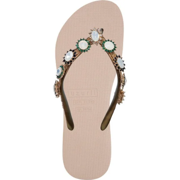 Het ontwerp voor deze slippers is volledig geïnspireerd op stijlicoon Marilyn Monroe. Zij stond bekend om haar ultra-vrouwelijke looks. De Pearl Monroe herken je aan haar parelmoer kleurige en gekleurde stenen. De V wordt bedekt met een glanzende, zilveren ketting.Onze slippers zijn uniek, handgemaakt en met zorg en liefde ontworpen. De zool, die zijdezacht aanvoelt aan je voet, is gemaakt van rubber. De bandjes zijn gemaakt van PVC. De V kenmerkt zich door het originele Uzurii logo op de bandjes. Onze slippers worden gemaakt in China en BraziliÎ.