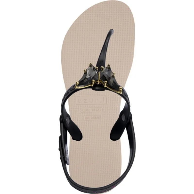 De Selena Diamond Blue staat bekend om haar grote, zilverkleurige steen in de vorm van een vlinder. De gouden omlijning rond de grote steen geeft een extra verfijnd gevoel. Itís all about the details. Versierd met een zogenaamde switch button, kun je de knop (steen) zelf verwisselen met een groot aantal opties uit onze accessoirelijn. De V wordt versierd door het originele Uzurii logo over de bandjes. Op zoek naar wat extra comfort? Dan zit je met de Selena goed. De bandje over de hiel geeft je wat extra steun.Onze slippers zijn uniek, handgemaakt en met aandacht ontworpen. De zool, die zijdezacht aanvoelt aan je voet, is gemaakt van rubber. De bandjes zijn gemaakt van PVC. De V kenmerkt zich door het originele Uzurii logo op de bandjes. Onze slippers worden gemaakt in China en BraziliÎ.