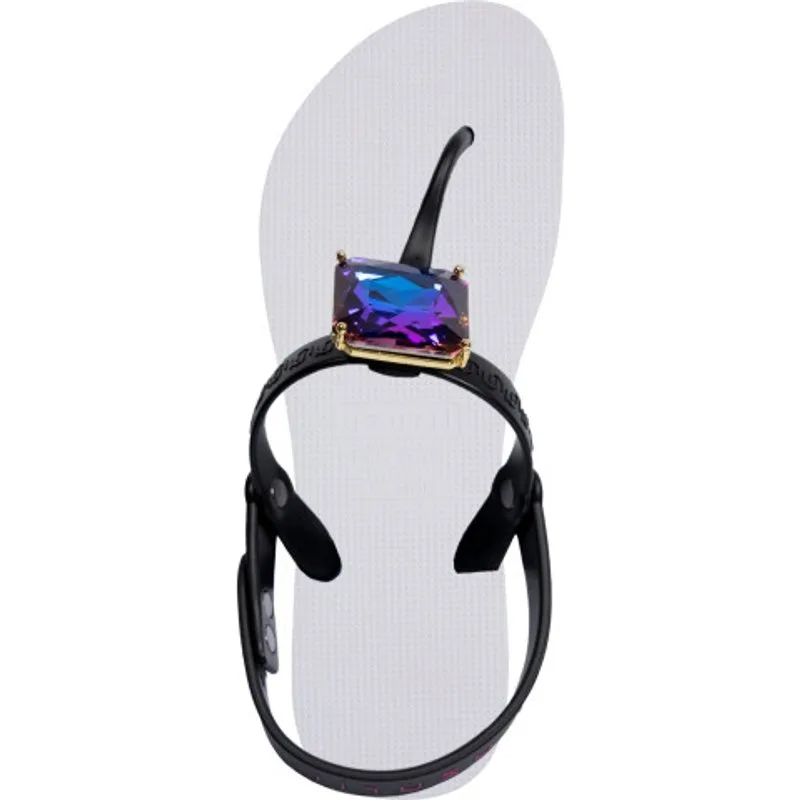 De Selena Diamond Blue staat bekend om haar grote blauwkleurige steen. De gouden omlijning rond de grote steen geeft een extra verfijnd gevoel. It’s all about the details. Versierd met een zogenaamde switch button, kun je de knop (steen) zelf verwisselen met een groot aantal opties uit onze accessoirelijn. De V wordt versierd door het originele Uzurii logo over de bandjes. Op zoek naar wat extra comfort? Dan zit je met de Selena goed. De bandje over de hiel geeft je wat extra steun.Onze slippers zijn uniek, handgemaakt en met aandacht ontworpen. De zool, die zijdezacht aanvoelt aan je voet, is gemaakt van rubber. De bandjes zijn gemaakt van PVC. De V kenmerkt zich door het originele Uzurii logo op de bandjes. Onze slippers worden gemaakt in China en Brazilië
