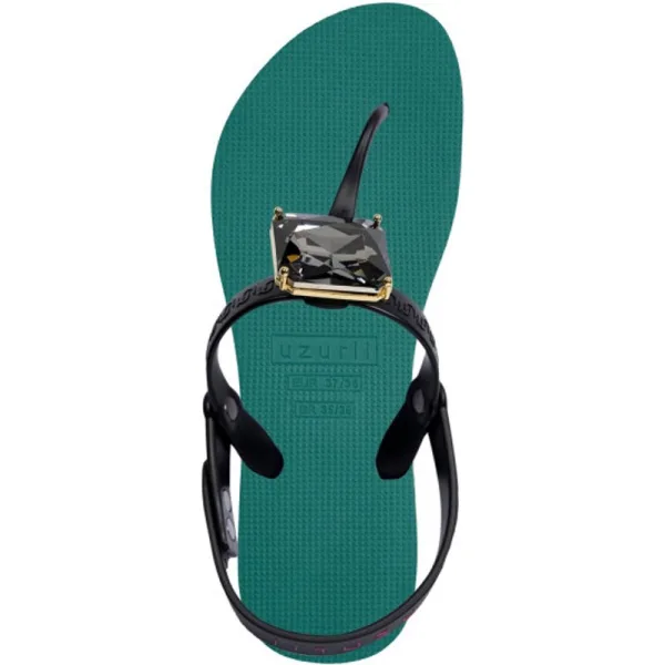 De Selena Diamond Blue staat bekend om haar grote zilverkleurige steen. De gouden omlijning rond de grote steen geeft een extra verfijnd gevoel. Itís all about the details. Versierd met een zogenaamde switch button, kun je de knop (steen) zelf verwisselen met een groot aantal opties uit onze accessoirelijn. De V wordt versierd door het originele Uzurii logo over de bandjes. Op zoek naar wat extra comfort? Dan zit je met de Selena goed. De bandje over de hiel geeft je wat extra steun.Onze slippers zijn uniek, handgemaakt en met aandacht ontworpen. De zool, die zijdezacht aanvoelt aan je voet, is gemaakt van rubber. De bandjes zijn gemaakt van PVC. De V kenmerkt zich door het originele Uzurii logo op de bandjes. Onze slippers worden gemaakt in China en BraziliÎ.