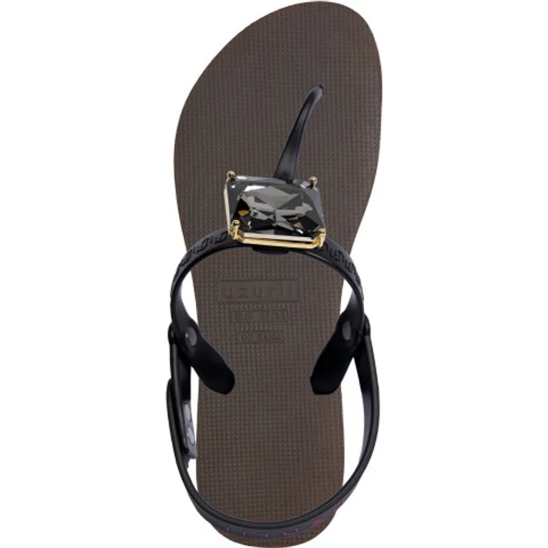 De Selena Diamond Blue staat bekend om haar grote zilverkleurige steen. De gouden omlijning rond de grote steen geeft een extra verfijnd gevoel. Itís all about the details. Versierd met een zogenaamde switch button, kun je de knop (steen) zelf verwisselen met een groot aantal opties uit onze accessoirelijn. De V wordt versierd door het originele Uzurii logo over de bandjes. Op zoek naar wat extra comfort? Dan zit je met de Selena goed. De bandje over de hiel geeft je wat extra steun.Onze slippers zijn uniek, handgemaakt en met aandacht ontworpen. De zool, die zijdezacht aanvoelt aan je voet, is gemaakt van rubber. De bandjes zijn gemaakt van PVC. De V kenmerkt zich door het originele Uzurii logo op de bandjes. Onze slippers worden gemaakt in China en BraziliÎ.