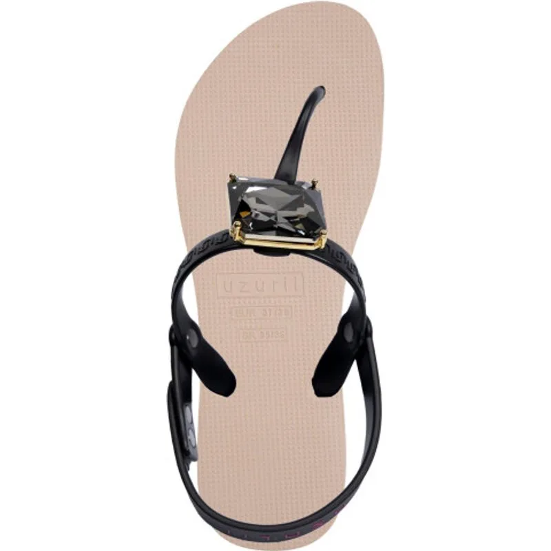 De Selena Diamond Blue staat bekend om haar grote zilverkleurige steen. De gouden omlijning rond de grote steen geeft een extra verfijnd gevoel. Itís all about the details. Versierd met een zogenaamde switch button, kun je de knop (steen) zelf verwisselen met een groot aantal opties uit onze accessoirelijn. De V wordt versierd door het originele Uzurii logo over de bandjes. Op zoek naar wat extra comfort? Dan zit je met de Selena goed. De bandje over de hiel geeft je wat extra steun.Onze slippers zijn uniek, handgemaakt en met aandacht ontworpen. De zool, die zijdezacht aanvoelt aan je voet, is gemaakt van rubber. De bandjes zijn gemaakt van PVC. De V kenmerkt zich door het originele Uzurii logo op de bandjes. Onze slippers worden gemaakt in China en BraziliÎ.