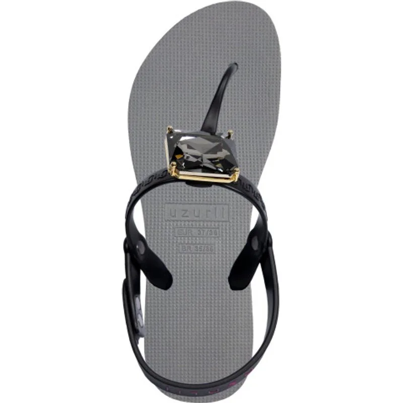 De Selena Diamond Blue staat bekend om haar grote zilverkleurige steen. De gouden omlijning rond de grote steen geeft een extra verfijnd gevoel. Itís all about the details. Versierd met een zogenaamde switch button, kun je de knop (steen) zelf verwisselen met een groot aantal opties uit onze accessoirelijn. De V wordt versierd door het originele Uzurii logo over de bandjes. Op zoek naar wat extra comfort? Dan zit je met de Selena goed. De bandje over de hiel geeft je wat extra steun.Onze slippers zijn uniek, handgemaakt en met aandacht ontworpen. De zool, die zijdezacht aanvoelt aan je voet, is gemaakt van rubber. De bandjes zijn gemaakt van PVC. De V kenmerkt zich door het originele Uzurii logo op de bandjes. Onze slippers worden gemaakt in China en BraziliÎ.