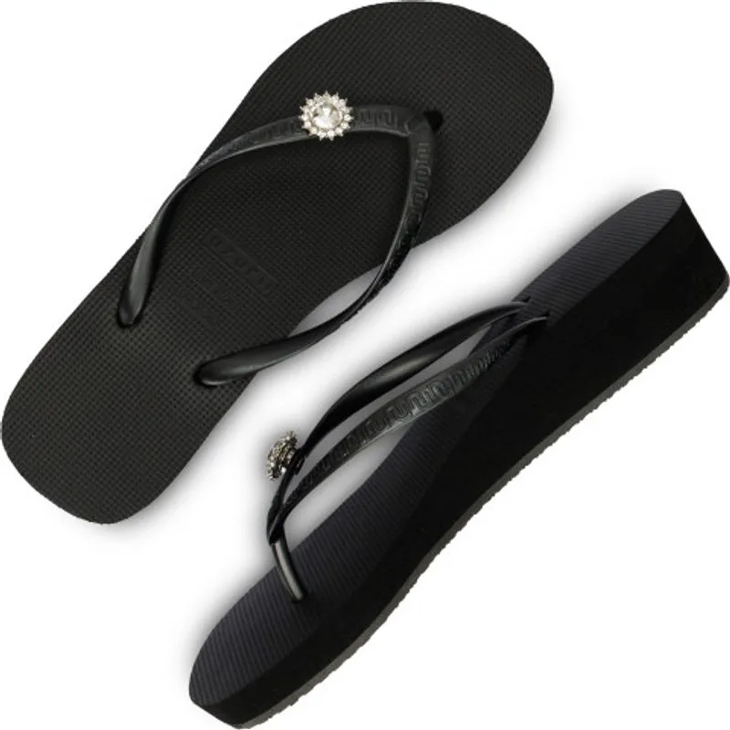 Stap in stijl met deze vrouwelijke switch mid heel slippers. Het originele ontwerp heeft een verhoogde hak en een verwisselbare siersteen met een handig klik systeem. Voeg een vleugje elegantie toe aan elke outfit met deze veelzijdige slippers.