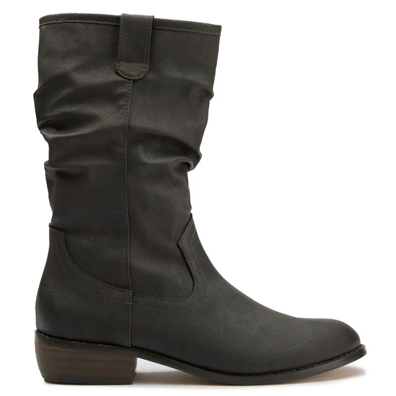 Zadel je stijlvol op met deze rijke, bruine laarzen tot halverwege de kuit die bewijzen dat compassievolle mode er nog nooit zo goed heeft uitgezien. Gemaakt van premium synthetische materialen in een PETA-goedgekeurde faciliteit, hebben ze charmante sterretjes-geprinte voeringen die een vleugje speelsheid aan je duurzame garderobe toevoegen. Deze veganistische schoonheden bieden alle Westerse flair waar je naar verlangt, terwijl ze trouw blijven aan je waarden.