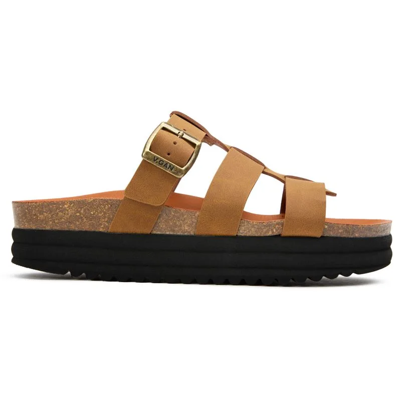 V.Gan's Vegan Fig Slide voetbed combineert aardse tan tinten met ethische modecredentials. Deze platformsandalen voor vrouwen bieden een zomerklare stijl zonder milieukompromis. Het synthetische bovenwerk heeft een verstelbare merksluiting voor een persoonlijke pasvorm, terwijl de exclusieve voetbedconstructie zorgt voor langdurig comfort. Gemaakt in een vegan gecertificeerde fabriek met duurzame en ethisch verantwoorde materialen, laten deze door PETA goedgekeurde slides je je look verfraaien terwijl je trouw blijft aan je waarden.