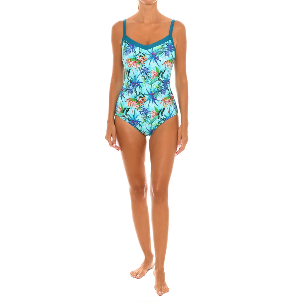EB0915C Damesbadpak met V-hals. Het heeft een V-halslijn aan de voorkant, waardoor een vrouwelijk en elegant silhouet ontstaat. Inclusief cups om de buste te ondersteunen en te verbeteren. Volledig gevoerd. Met verstelbare bandjes om de pasvorm en bedekking aan te passen. Dit Teleno badpak is een aantrekkelijke en veelzijdige optie om te dragen op het strand, bij het zwembad of bij andere wateractiviteiten. Het elegante en vrouwelijke ontwerp maakt het een geschikt kledingstuk voor zowel een dag op het strand als voor meer formele evenementen of situaties. Samenstelling: Buitenkant: 82% Polyamide, 18% Elastaan. Voering: 92% Polyester, 8% Elastaan. Cup: 100% Polyester Onderhoud: Handwas tot maximaal 30º. Geen droger gebruiken. Geen bleekmiddel gebruiken. Niet strijken. Niet chemisch reinigen. Niet uitknijpen.